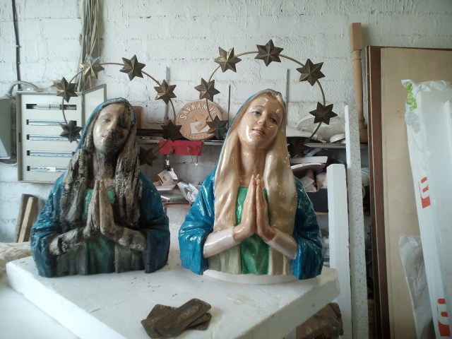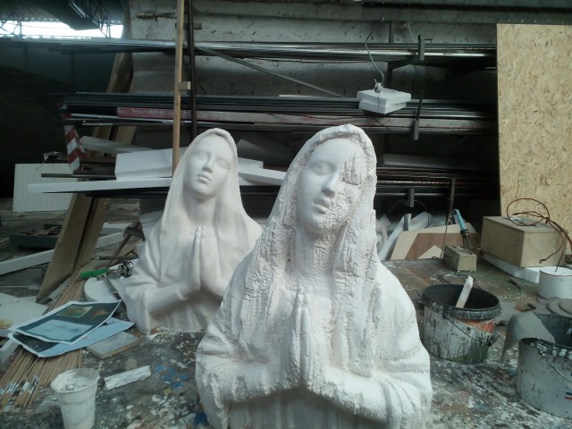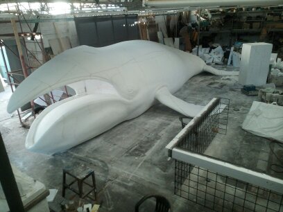 I was assembled by sakkis sets to sculpt an 12m long polystyrene foam bowhead whale and two madonna sculptures. the whale was coated with fine cotton fabric and natural latex, the madonnas with acrylic resin and stone compound with fiberglass,painting and epoxy resin on top because the sculptures were subjected to fire for the purpose of the film.