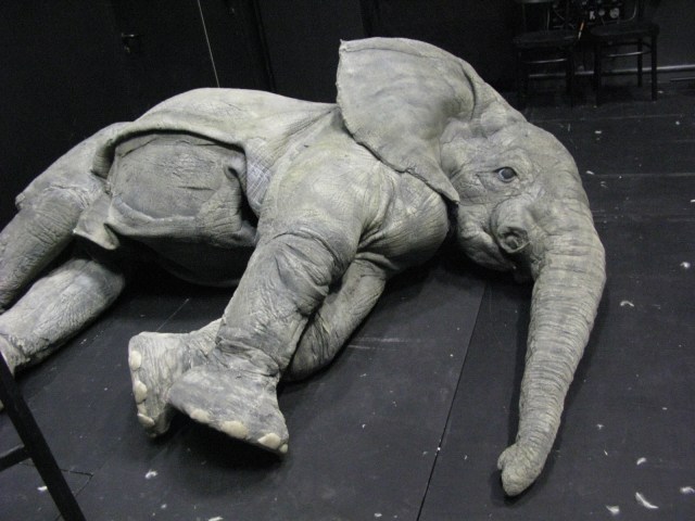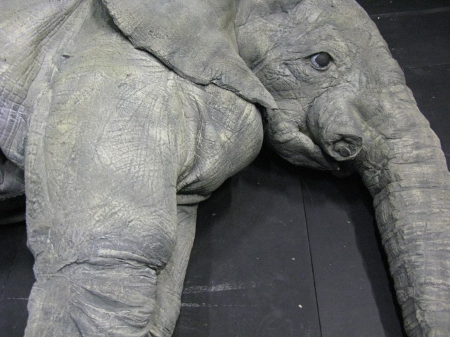 For this project I was asked to make an elephant costume ,to be worn by two actors. the costume could support a person riding by having an aluminum structure built in. It is made by foam, fine cotton and natural latex